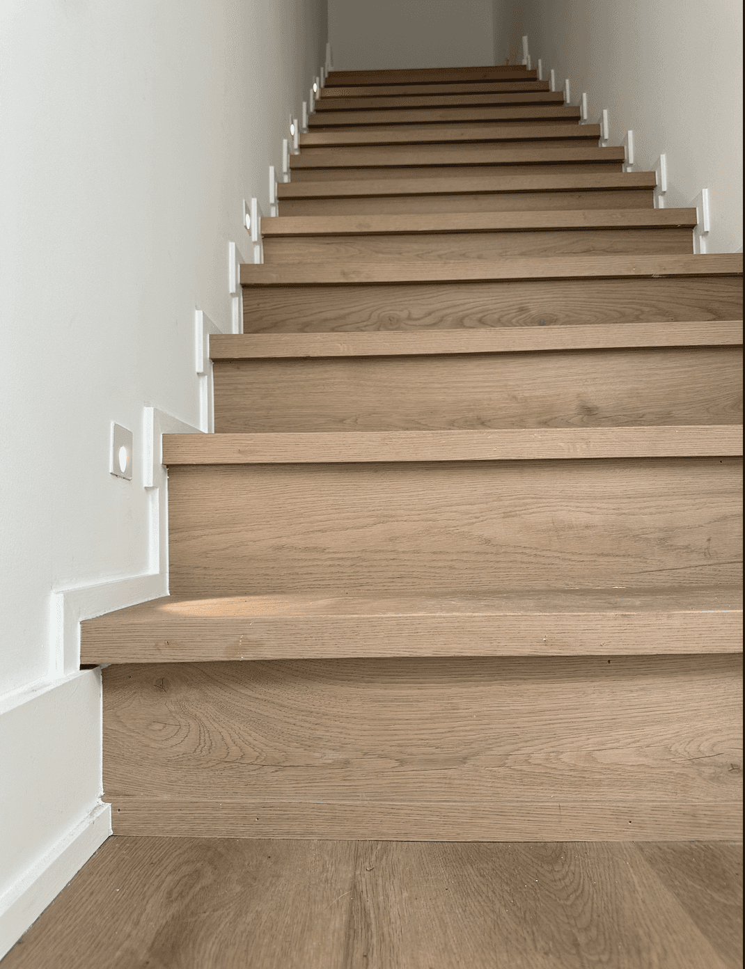 Upstairs features a bright, minimal living area with smart controls, heated bathroom floors, and built-in laundry.